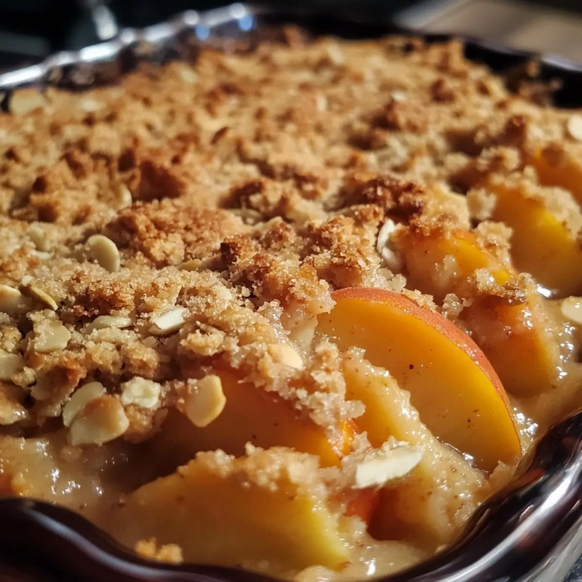 - Place the dish in the preheated oven and bake for 30 minutes, or until the topping is golden brown and the peaches are bubbling. The scent of toasted almonds and caramelized sugar will fill your kitchen—an irresistible aroma that makes the wait worthwhile.