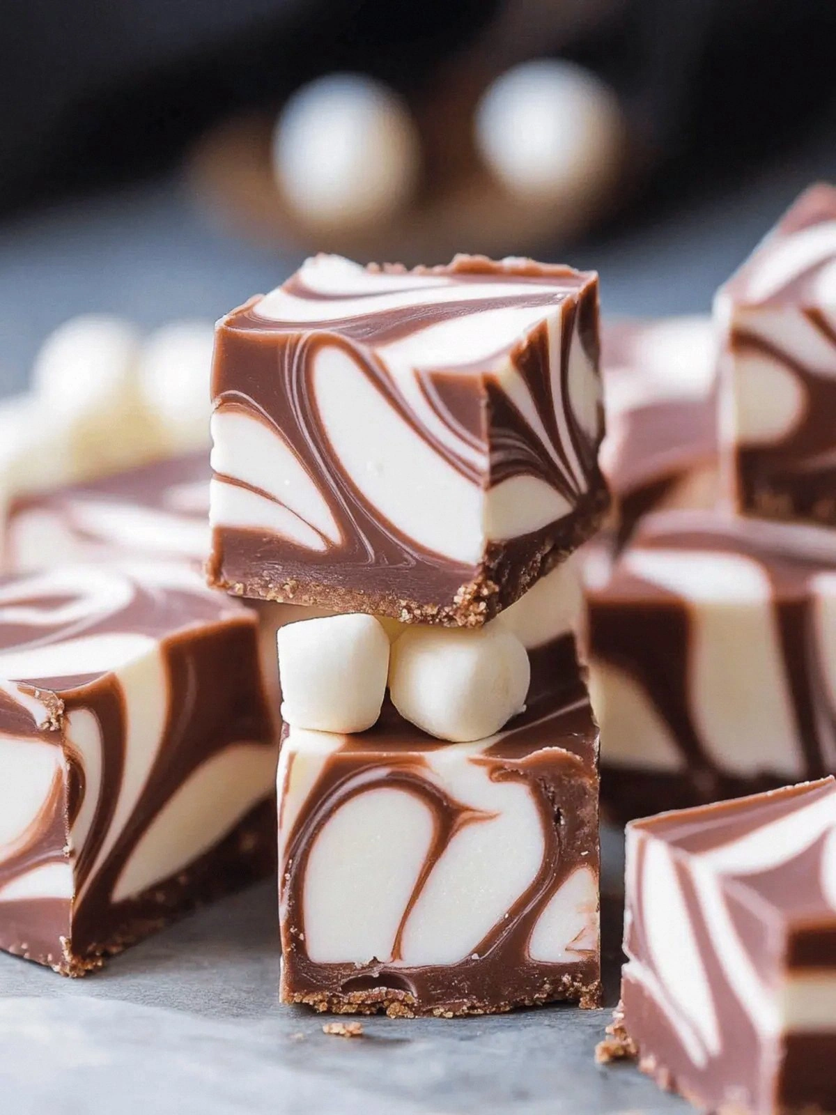 For an extra layer of texture, fold in a handful of mini marshmallows after the mixture has cooled slightly but before it sets completely. The mini marshmallows will pop when you bite into the fudge, adding a delightful surprise. Make sure to stir gently to keep the swirls intact.