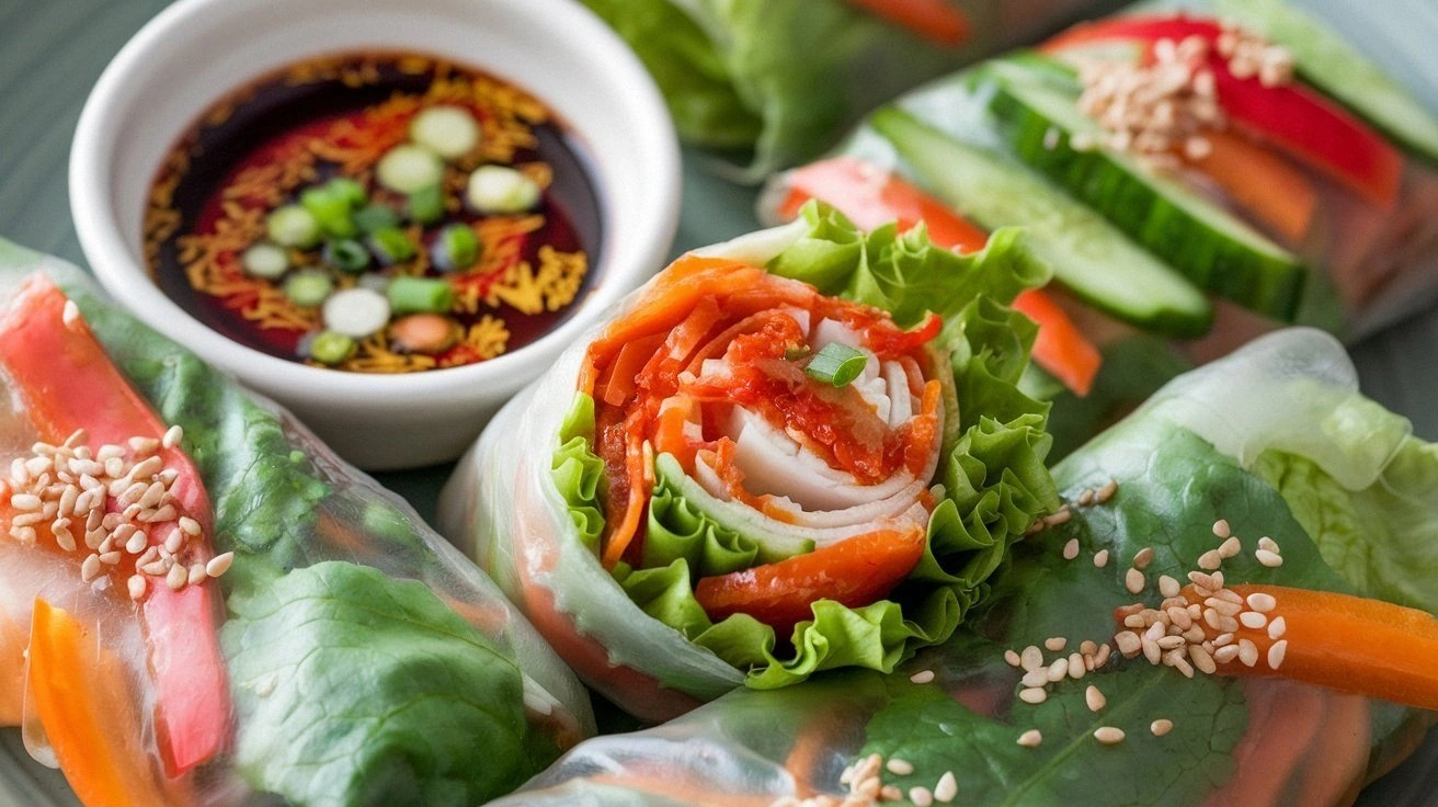 Carrots, cucumber, bell pepper, and lettuce form the crunchy backbone of each roll. Thinly sliced carrots give a sweet, earthy bite, while cucumber offers a cool, watery contrast. Bell pepper adds a sweet crunch and a pop of color, and lettuce provides a soft, leafy layer that keeps the roll from getting too dense. If you omit any of these, you’ll lose a layer of texture that makes the rolls feel complete.
