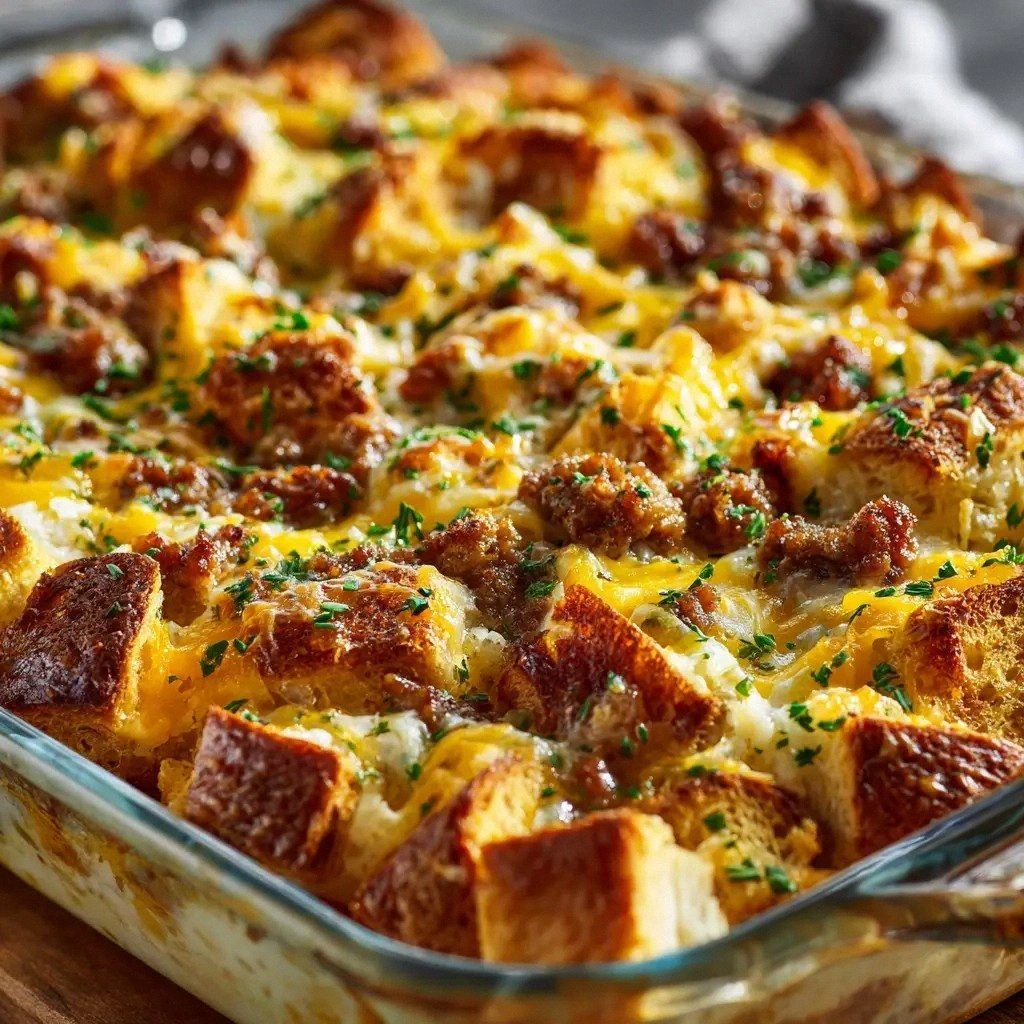 Picture this: the kitchen lights flicker on, the aroma of melted cheese and browned sausage fills the air, and the sound of a gentle sizzle echoes from the oven. The croissants, once brittle, now soften into a pillowy, buttery base that cracks open with a satisfying snap. The eggs, whisked with cream and mustard, create a custard that clings to every bite, while the cheddar and Gruyère melt into a glossy, caramelized glaze that shimmers like a sunrise. The green onions add a fresh, peppery bite that cuts through the richness, making each forkful a balanced, symphonic experience.